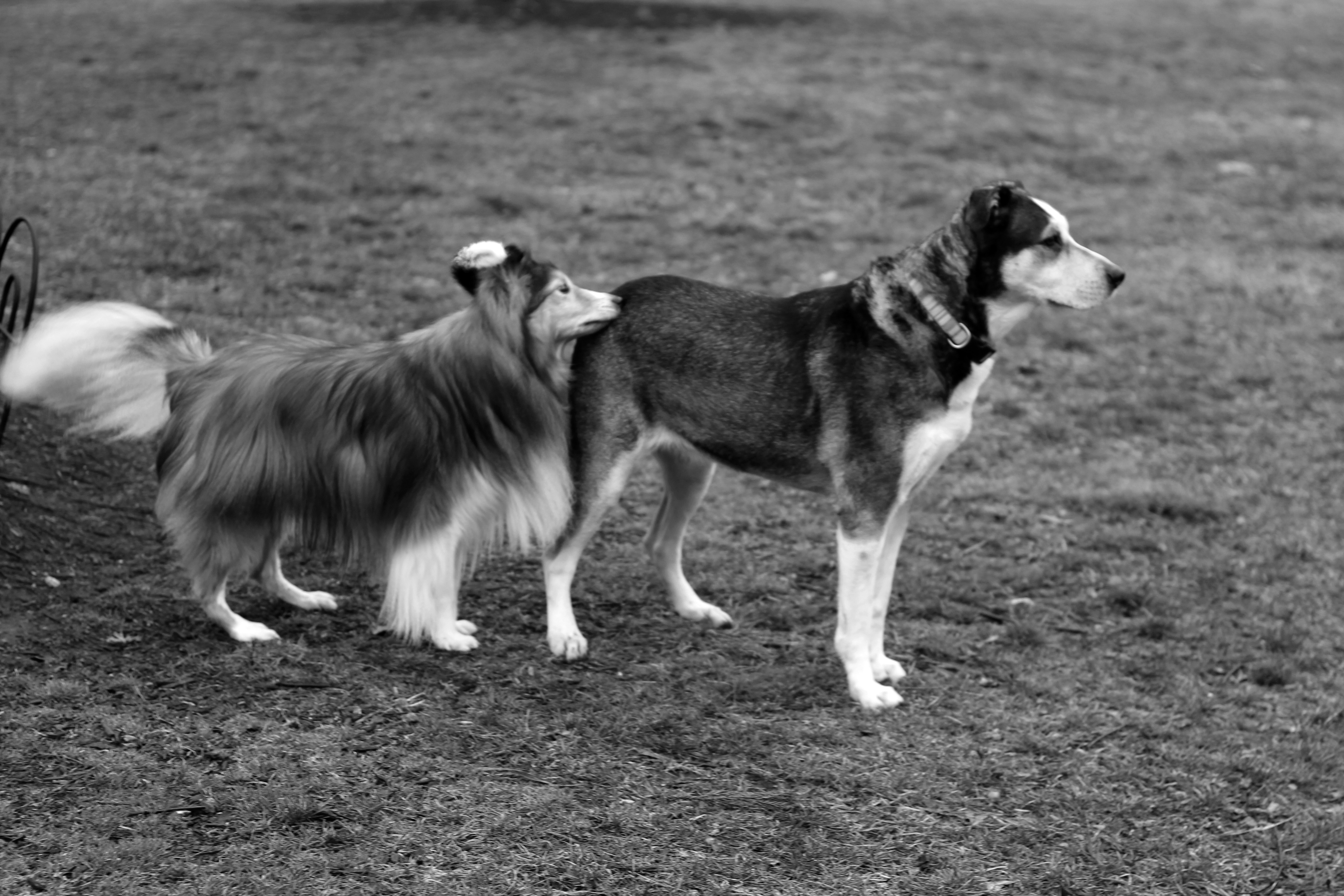 Today, Biscuit ran into his “girlfriend,” Princess, in the neighborhood park, Concert Park. Princess is also a rescue dog who is twelve years old who lives in our neighborhood. Biscuit was so excited to see Princess — a belated Valentine’s Day treat! Princess is the only dog that keeps Biscuit’s attention! Biscuit was in full attention mode when he first caught a glimpse of Princess — his ears were raised, his tail was wagging, he made his whistling sounds, and he followed Princess everywhere! They had a ball playing together late this afternoon! Biscuit always enjoys running into Princess in the neighborhood park. Below are a couple of photographs taken earlier today.