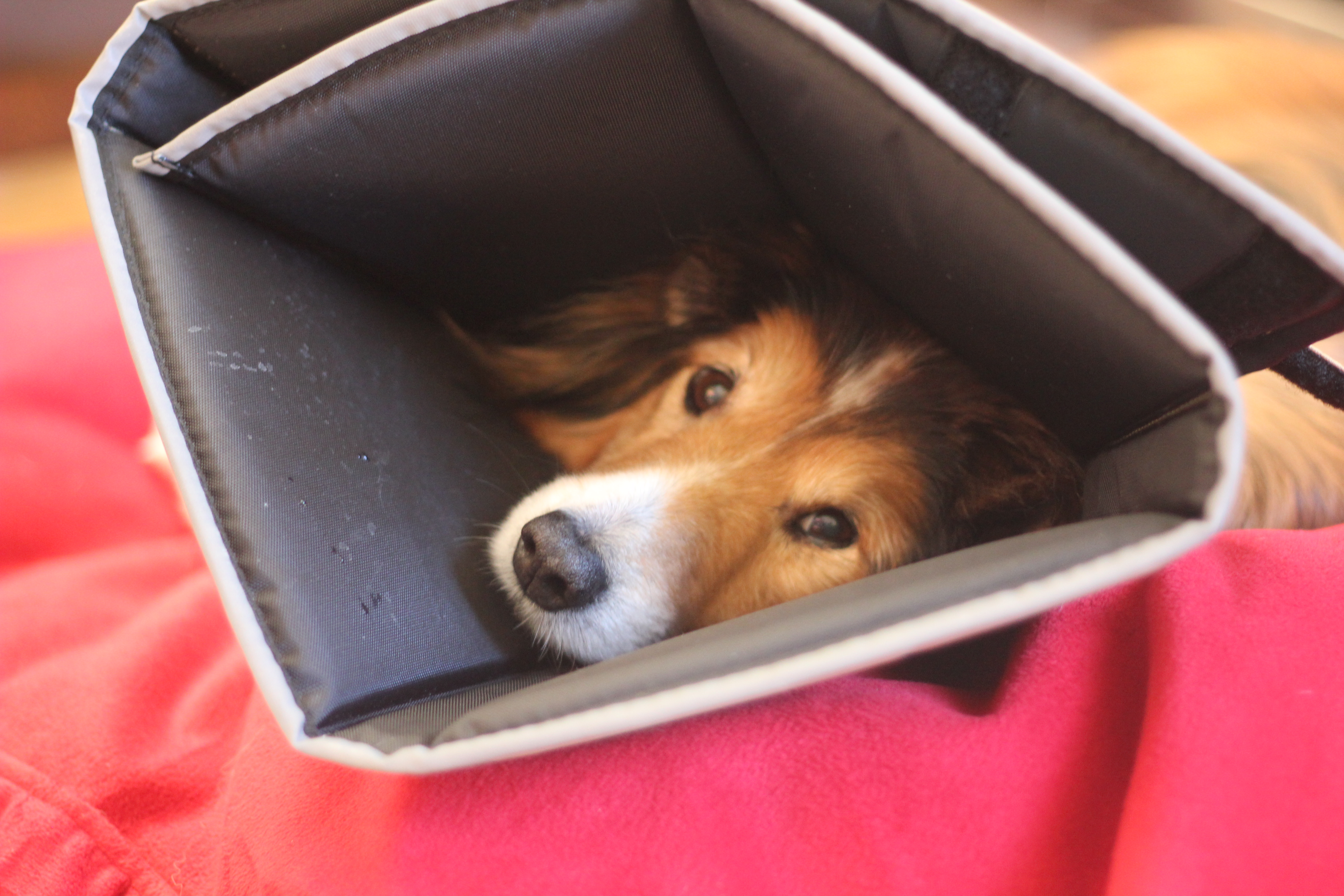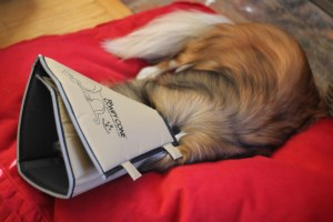Biscuit seems to be doing pretty well since his surgery. However, he does not like his cone, and we cannot blame him. We have been staying home with him this weekend, and he has been resting quite a bit. Biscuit has about twelve more days in the Comfy Cone. If his wound heals ok after his stitches are removed by the vet, and the vet says that it is ok, we will give him a bath to freshen him up! Below are some recent photographs of Biscuit.