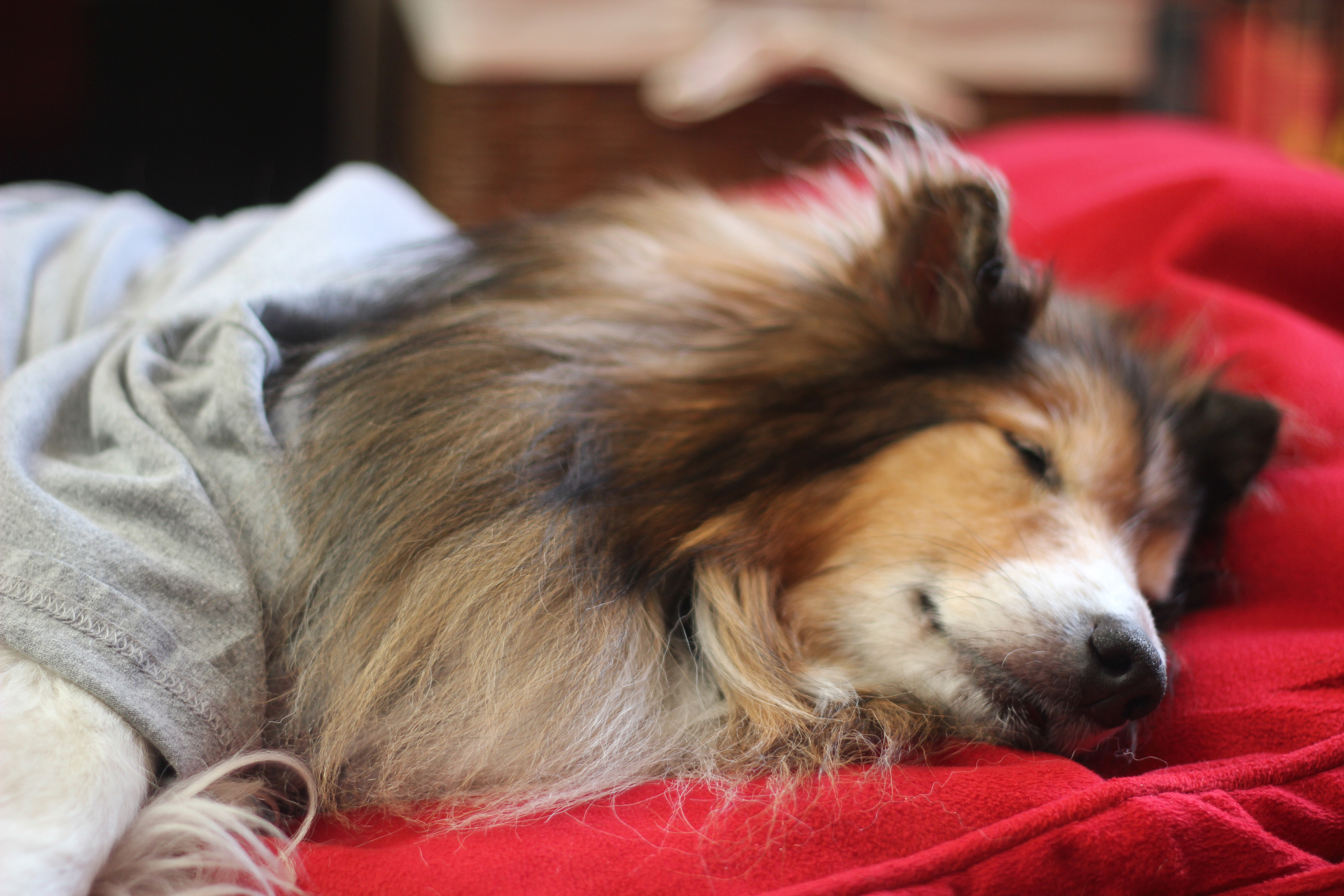 Biscuit is doing much better since yesterday’s events with the Comfy Cone. The t-shirt is working out really well. Biscuit has not tried to go after his stitches and he is still able to clean himself and get water when he wants to get a drink. He seems back to his usual self, which is good! We have the smaller cone ready to go, if needed.