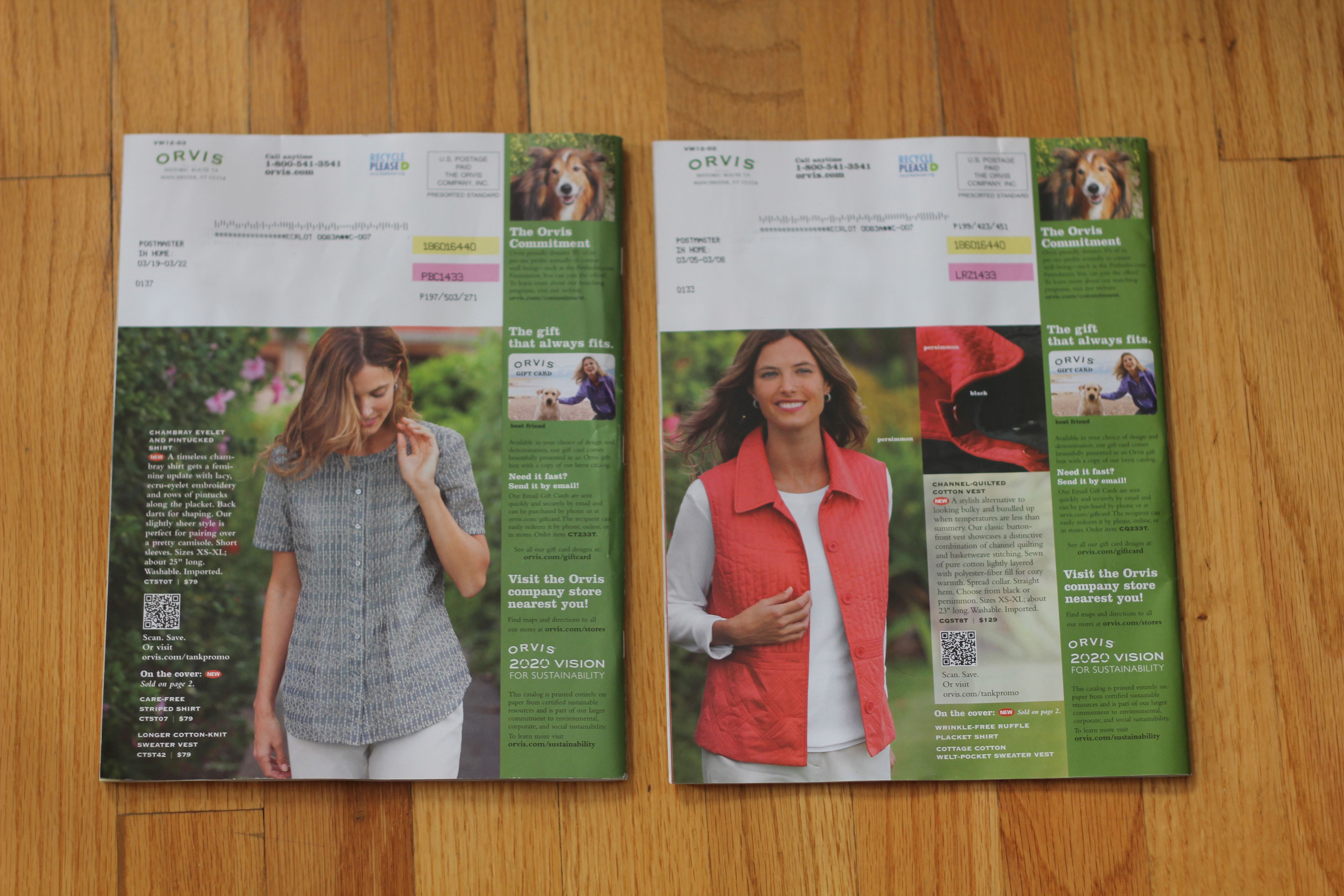 Last night we took Biscuit out in his Hound About, which he greatly enjoyed! On our way to Federal Hill, a neighbor brought to our attention that she saw Biscuit in two of her Orvis Women’s Clothing catalogs! This is good news as we did not know about Biscuit being in more than one Orvis catalog. She was nice enough to give them to us! This means that Biscuit is making an even bigger debut than we anticipated! We are very pleased. Photographs are displayed below.