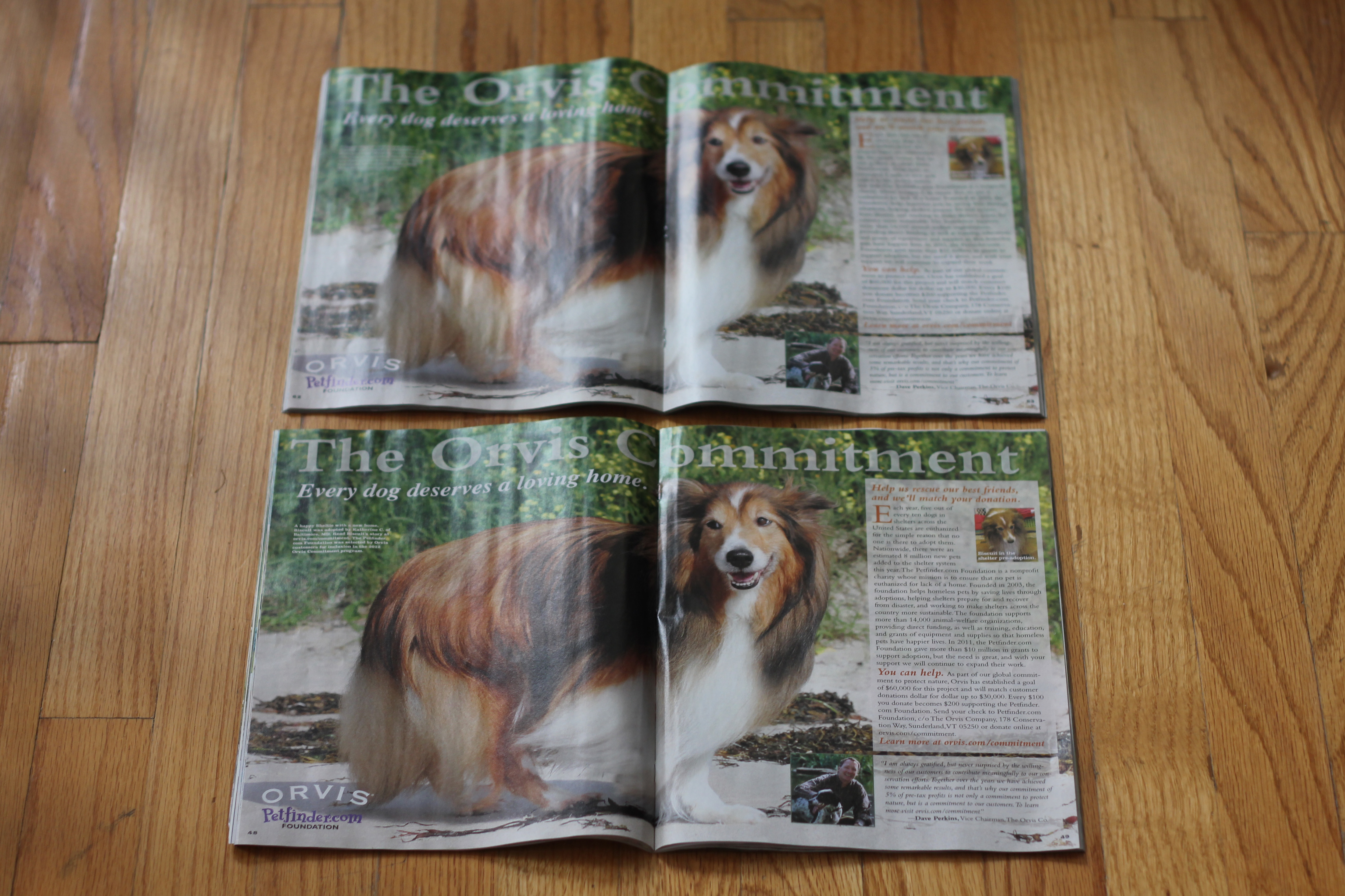 Biscuit is featured as a centerfold in the Orvis Women’s Clothing catalog!