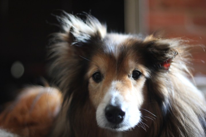 We discovered yesterday evening that it appears that Biscuit has an ear infection in his left ear. This is the same ear where the vet discovered that Biscuit had a ruptured ear drum and a very swollen ear canal when Biscuit was first seen by a vet while he lived at the sheltie rescue after Biscuit had been living on the street. We are taking him to the vet tonight to be certain, and get the right medicine to clear up his ear. Poor little guy. We hope that he will be feeling better soon. Below are some recent photographs of Biscuit.