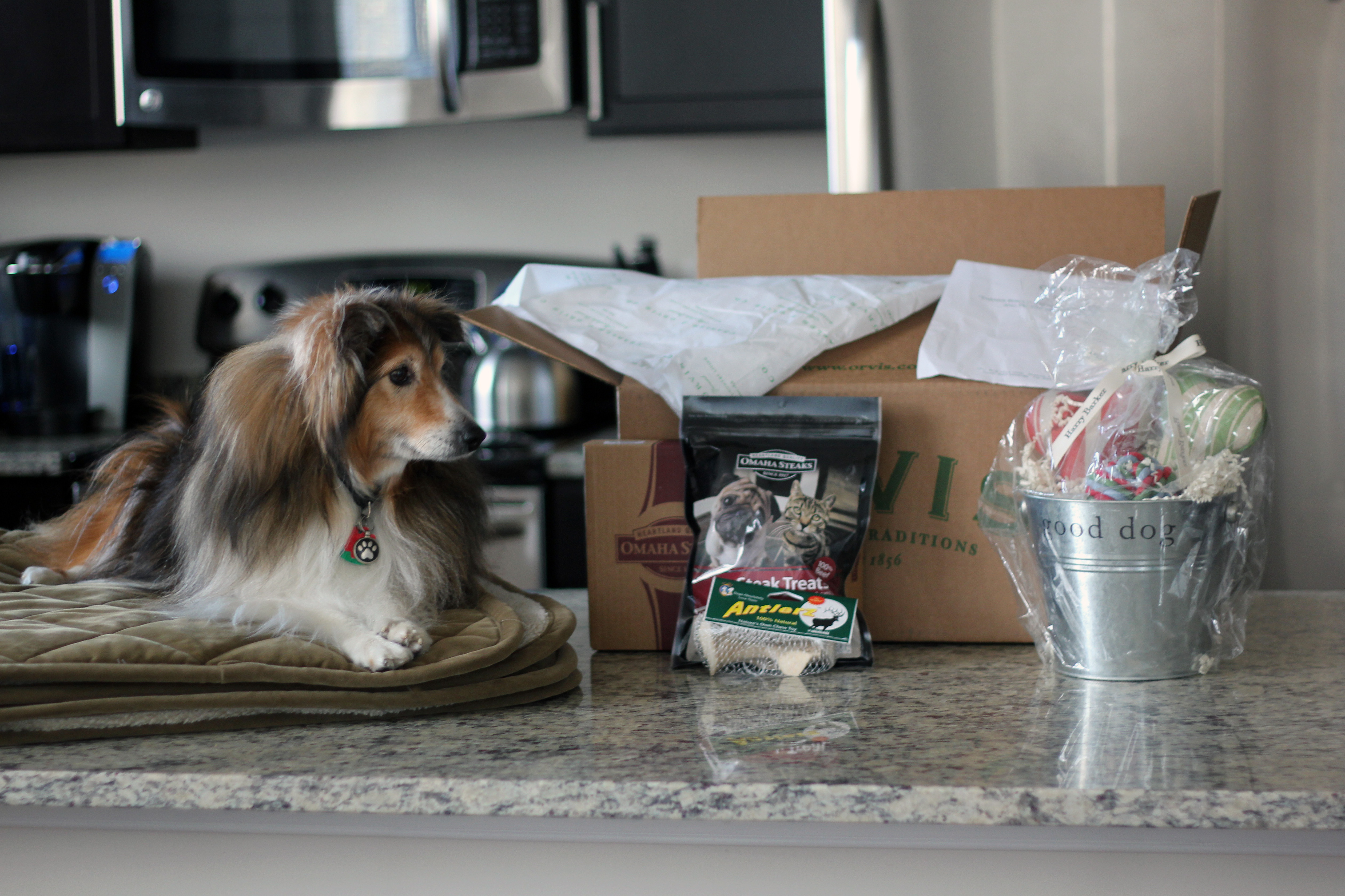 The note from Orvis to Biscuit, included with his gift package states, “THANKS BISCUIT, FROM YOUR FRIENDS AT ORVIS AND THE PETFINDER FOUNDATION.”