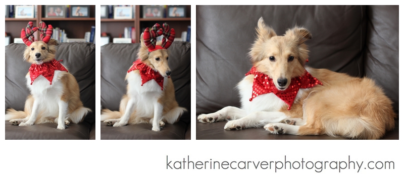 Nick did a good job in front of the camera wearing his Christmas attire!  I know that he rather have been sitting on his Daddy’s lap!  Victory also indulged me while I photographed her wearing her tartan antlers, courtesy of Biscuit.  We took Biscuit to visit Santa last year; however, Victory is still getting acclimated to her environment,  and we decided that we might try and take her to see Santa next year when she is a bit more acclimated!