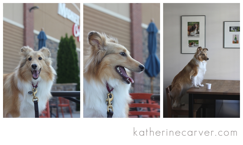 Below are some images of Victory when we went to dinner at Wegmans recently — We wish that we had more dog friendly restaurants near our house!; and an image of Victory getting ready to eat her vanilla Siggi’s yogurt! However, Victory does not mind where we go as long as she can come with us (and get some treats)!