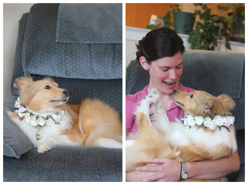 Of course, our little Victory was part of the “getting ready” part of the wedding day! She kept us all company while we got our hair and makeup done! Unfortunately, she could not come to the wedding itself, but she stayed with Nick, my parents’ furry family member, and they seemed to do well together!
