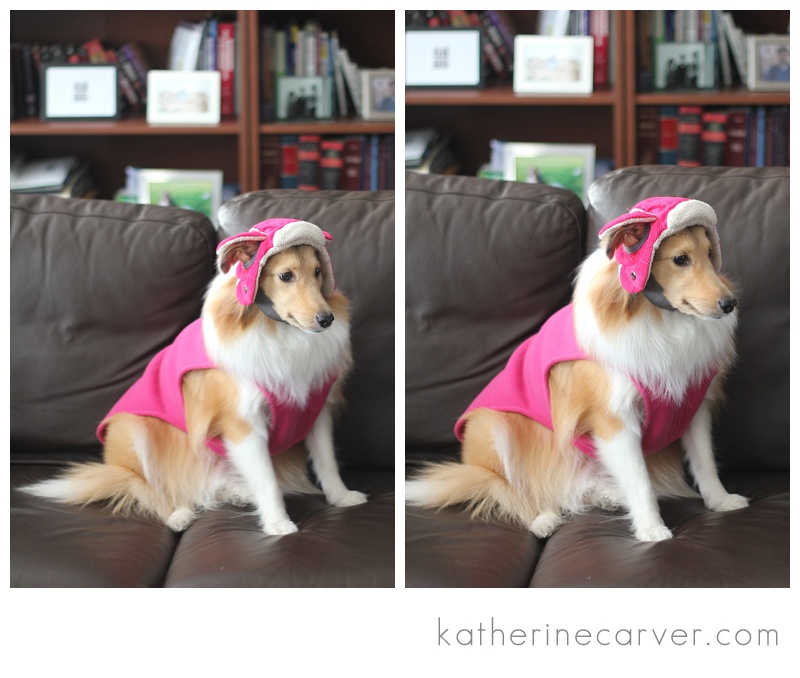 Well, it is getting a little cooler here! I found the most adorable hat that I happened to come across recently, and I picked it up for Victory! When I got home, Doug just smiled (in a good way!) I can’t help it, I love to spoil our Victory! Plus, I want to make sure she stays warm while she is out walking despite her lush fur coat that keeps growing! To our dismay, we have heard that this winter is supposed to be a worse winter than last year — and last year was filled with many cold days and lots of snow! We like snow, but not too much! In any event, Victory wears her new hat outside for her walks along with her cute pink fleece! Victory is always so agreeable with me concerning clothing ideas and photo ideas! We are so lucky to have Victory in our lives — she is the sweetest pup! Enjoy the images below!