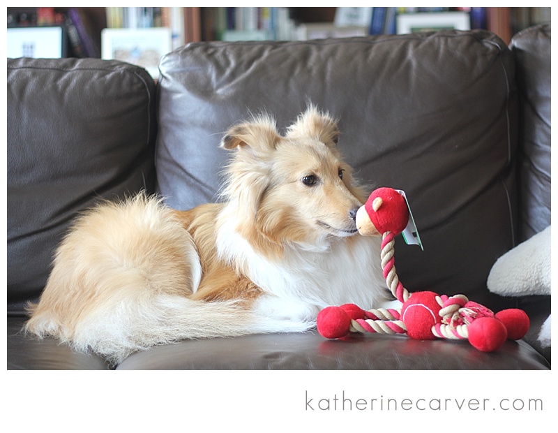 Hello! Glad you are all back together and that Doug could be home for Father’s Day. It’s hard to imagine that sweet little doggie chewing up anything! However, it’s good she takes that out on her toys and not anything else. Have a good week!