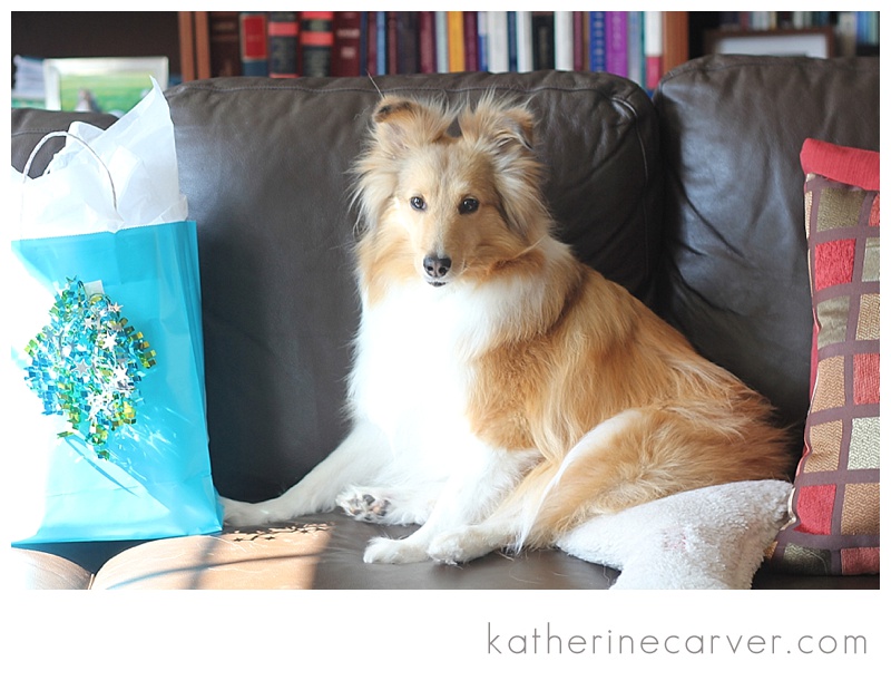 Here is Victory with her gifts before Doug opened them!