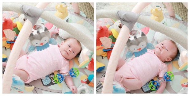 -she loves her play yard! She is mesmerized by all of the hanging objects and sounds!