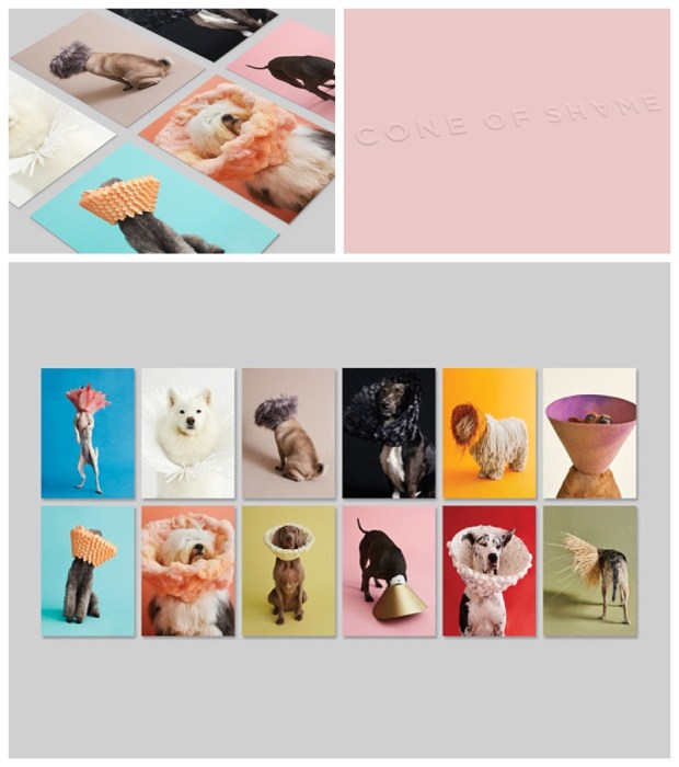 Winnie Au’s Cone of Shame Kickstarter project raises awareness and funds for rescue dogs with urgent medical needs. The funds pledged through the campaign enables the printing of twelve images as a pull-out notecard set. Each set includes twelve 5×7 inch notecards, printed on a beautiful extra thick uncoated stock, with a wraparound cover and embossed logo (designed by Four&Sons). Please check out the Kickstarter page and video (including behind-the-scene footage) to bring this project to life.