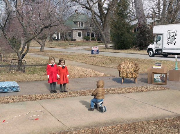 Julie Blackmon is a photographer who lives and works in Missouri. She majored in art education and photography during college, and she began photographing seriously in her late thirties. Her photographs are inspired by her experience of growing up in a large family, her current role as both mother and photographer, and the timelessness of family dynamics. Many of her photographs are inspired by 17th century Dutch and Flemish paintings of domestic life. Blackmon photographs are carefully orchestrated to include members of her own family with a sense of an uncanny. Sometimes her photographs are made up of several images via Photoshop. Blackmon has been quoted as saying, “I know I’m very much defined as the ‘family’ photographer, but I don’t think of it quite this way,” she says. “I’m just looking around at my everyday life and, like any artist, trying to make sense of it.”