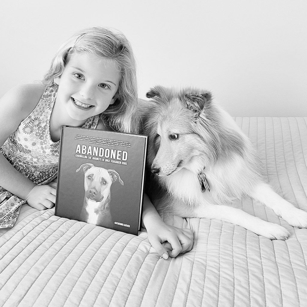 The image below contains all of my miracles in one photograph: My daughter, Alex; my rescue Shetland Sheepdog, Victory; and my newest miracle–my book: ABANDONED: Chronicling the Journeys of Once-Forsaken Dogs, which is is released on October 1, 2024, to kick off ‘Adopt-A-Dog Month!’ My copies just arrived, and it is quite surreal to hold this book, in my hands, after so much work, effort, and dedication–a dream realized. Alex is especially excited to see this book in physical form!