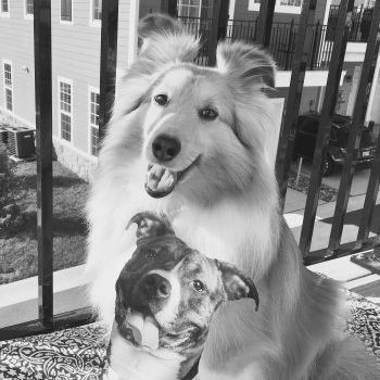 There are about 100 rotating volunteers to take the dogs for walks or car rides, or sit on the couches with the dogs and pet or play with them.