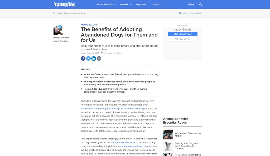My book, ABANDONED: Chronicling the Journeys of Once-Forsaken Dogs, was recently released!