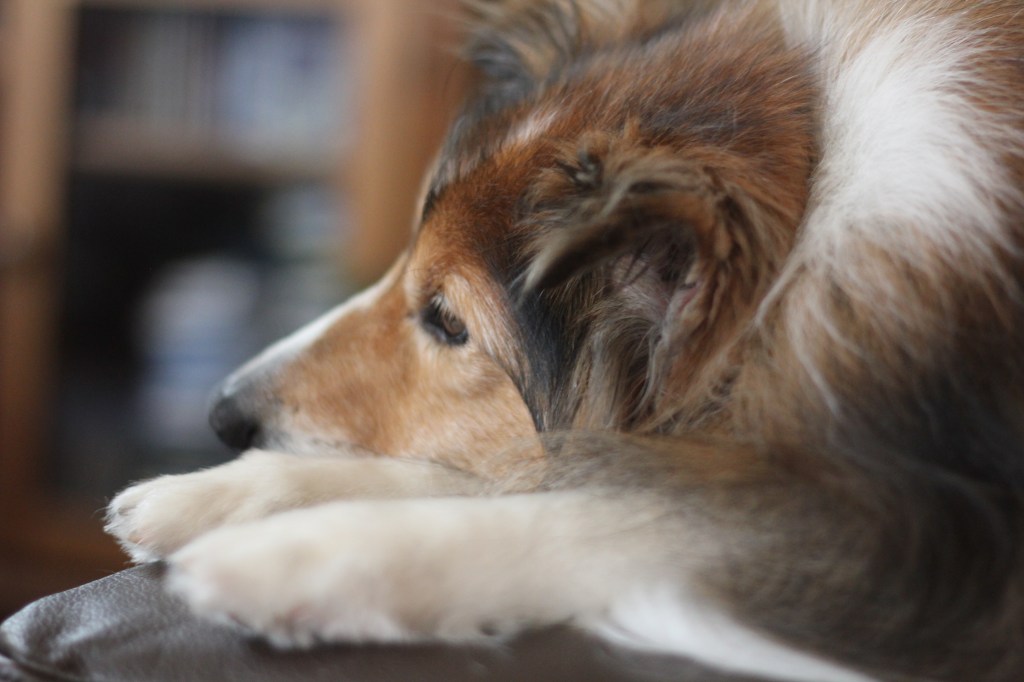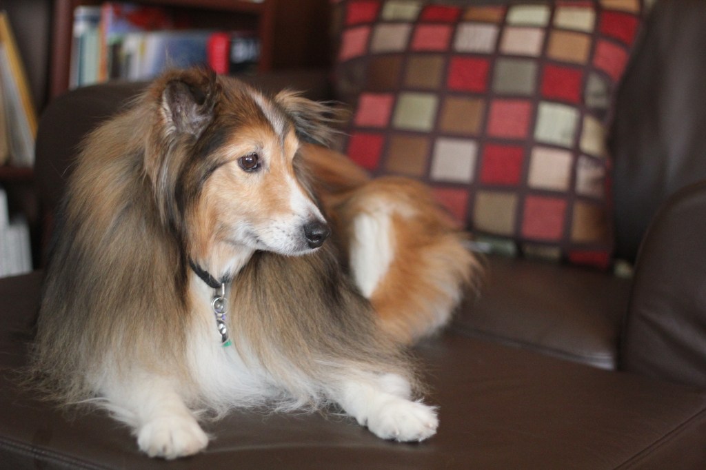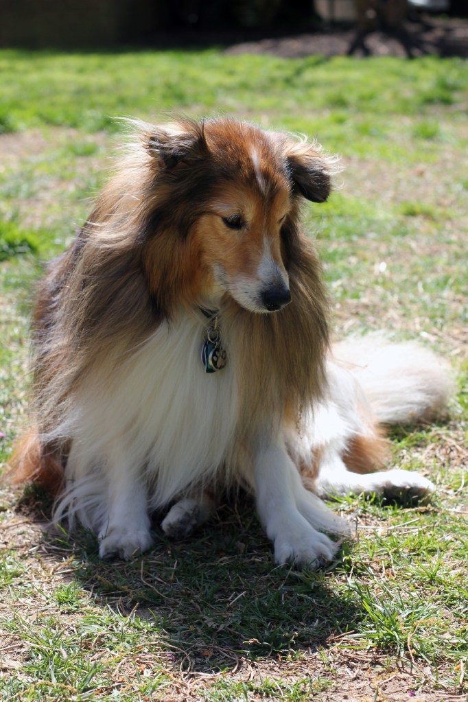 We discovered yesterday evening that it appears that Biscuit has an ear infection in his left ear. This is the same ear where the vet discovered that Biscuit had a ruptured ear drum and a very swollen ear canal when Biscuit was first seen by a vet while he lived at the sheltie rescue after Biscuit had been living on the street. We are taking him to the vet tonight to be certain, and get the right medicine to clear up his ear. Poor little guy. We hope that he will be feeling better soon. Below are some recent photographs of Biscuit.