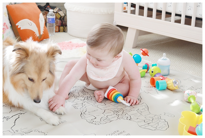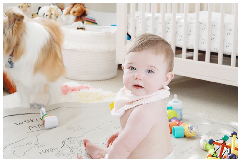 Doug and I are very grateful for our little girl and our little family! We feel so fortunate and our hearts have grown so much since Alex’s arrival, and I feel as though a part of me has been awakened. We look forward to seeing Alex’s little personality continue to develop and unfold. Below are a few images: Alex’s monthly portrait; Alex and Victory’s monthly portrait; followed by photos of Alex throughout this month; and some iphone images during her ninth month with us! You can read our birth story along with viewing images from Alex’s birth here; you can read Alex’s one month snapshot here; her two month snapshot here; her three month snapshot here; her four month snapshot here; her five month snapshot here; her six month snapshot here; her seven month snapshot here; and her eight month snapshot here.