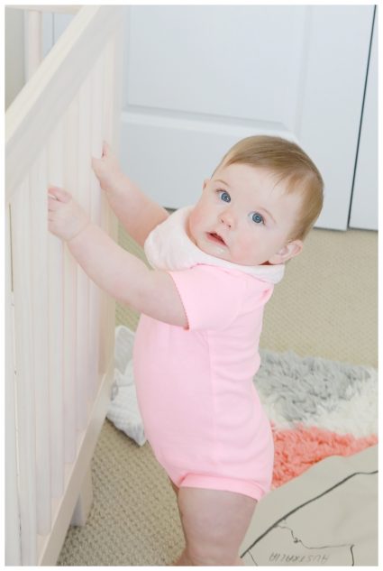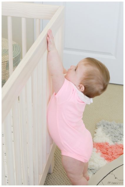 -greeting Alex in her nursery each morning. It is and adjustment to see her standing and making teeth marks all over the top of her crib!